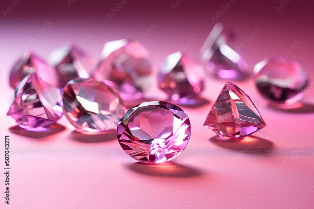 a group of pink diamonds sitting on top of a pink table top next Very well made.