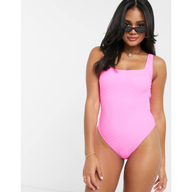 ASOS DESIGN deep rib square neck swimsuit in pink ASOS Very well made.