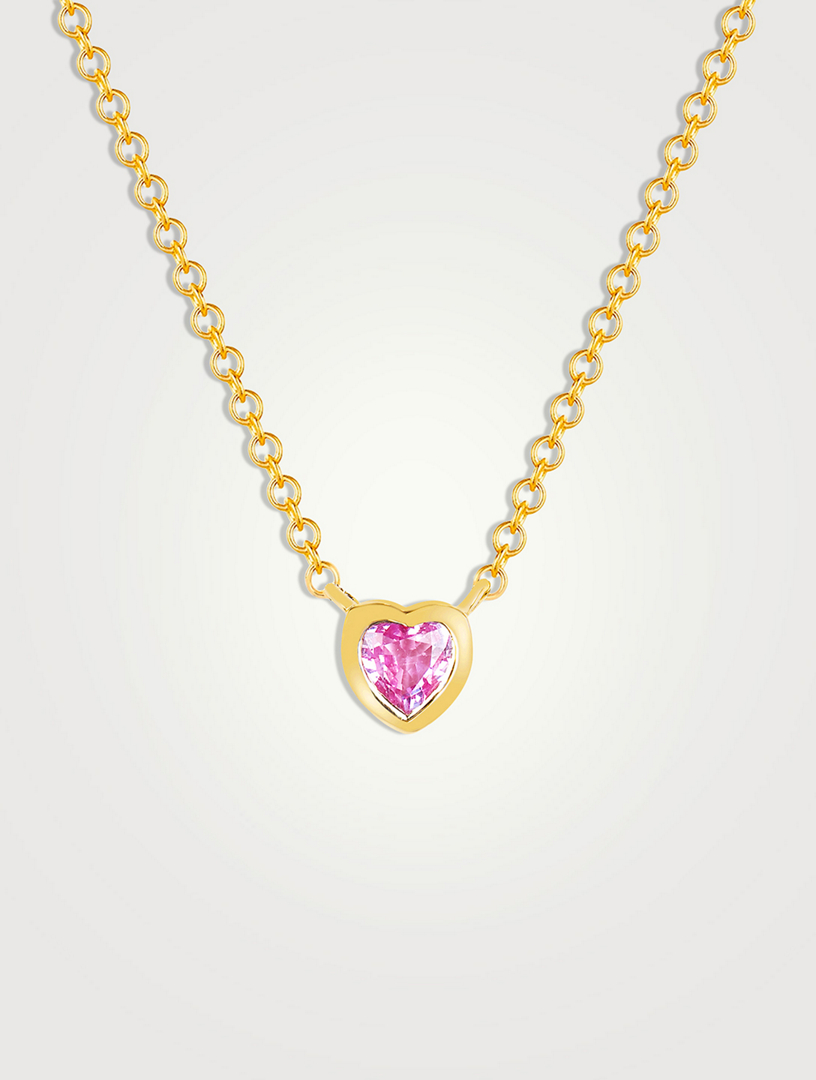 PINK SAPPHIRE SOLITAIRE HEART NECKLACE Very well made.
