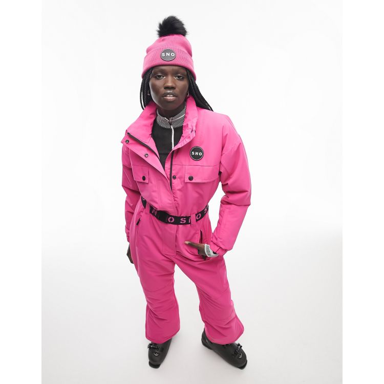 Topshop Sno ski suit with funnel neck belt in pink Very well made.