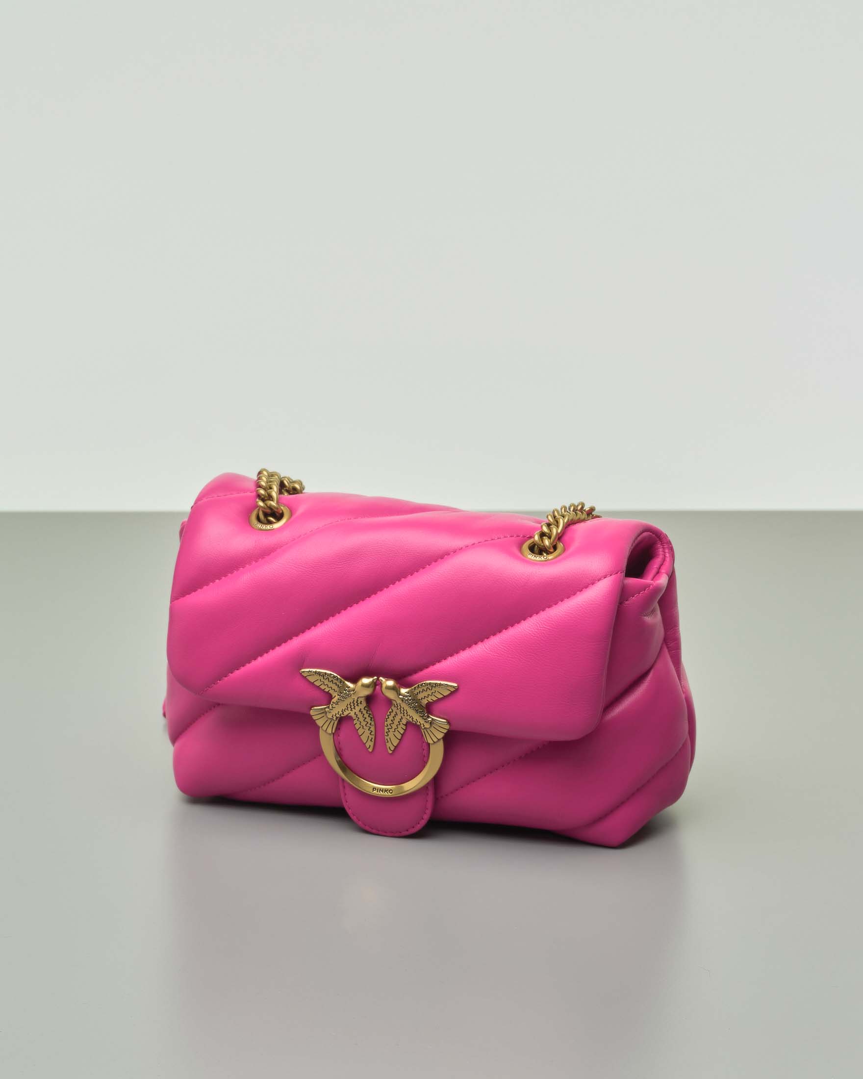 Mini Love Bag Puff fucsia in nappa con motivo matelass obliquo e Very well made.