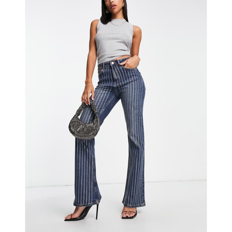 ASOS DESIGN flared jeans with diamante pinstripe in blue Very well made.