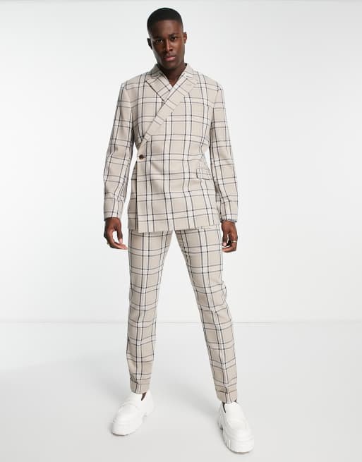 ASOS DESIGN slim suit pants in large highlight plaid in stone and Very well made.