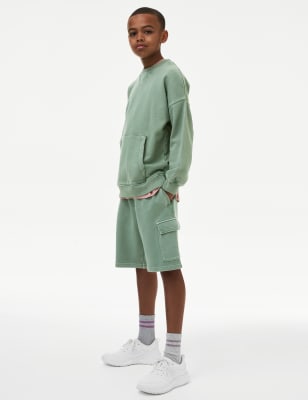 Cotton Rich Plain Cargo Shorts 6 16 Yrs Very well made.
