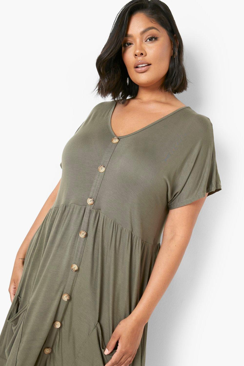 Plus Jersey Knit Button Down Pocket Smock Dress Very well made.