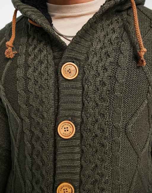 AMERICAN STITCH Hooded Cable Knit Buttoned Cardigan Men s L Gray Very well made.