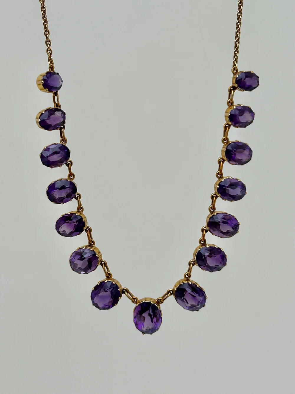Antique 15ct Yellow Gold Amethyst Rivi re Necklace in Original Box Very well made.