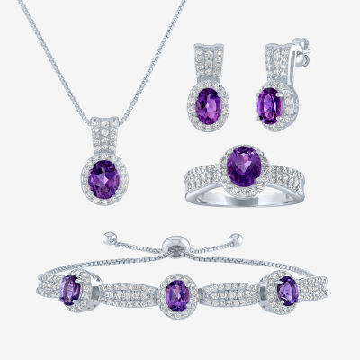 February Birthstone Genuine Amethyst Jewelry Set Crystal Very well made.