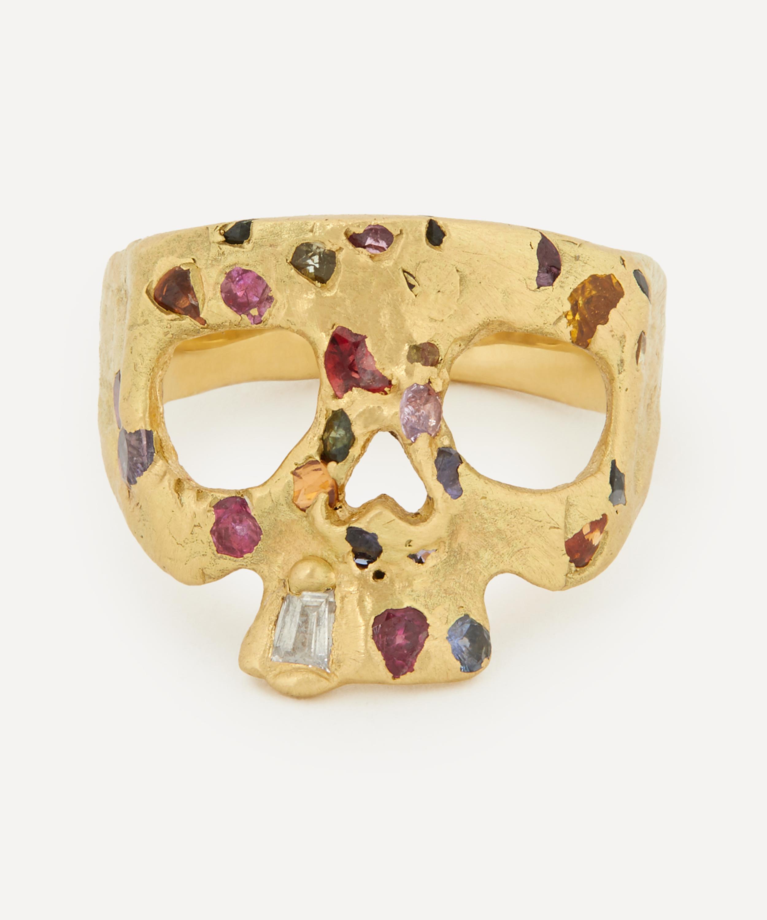 Polly Wales 18ct Gold Rainbow Narrow Sapphire Confetti Ring Liberty Very well made.