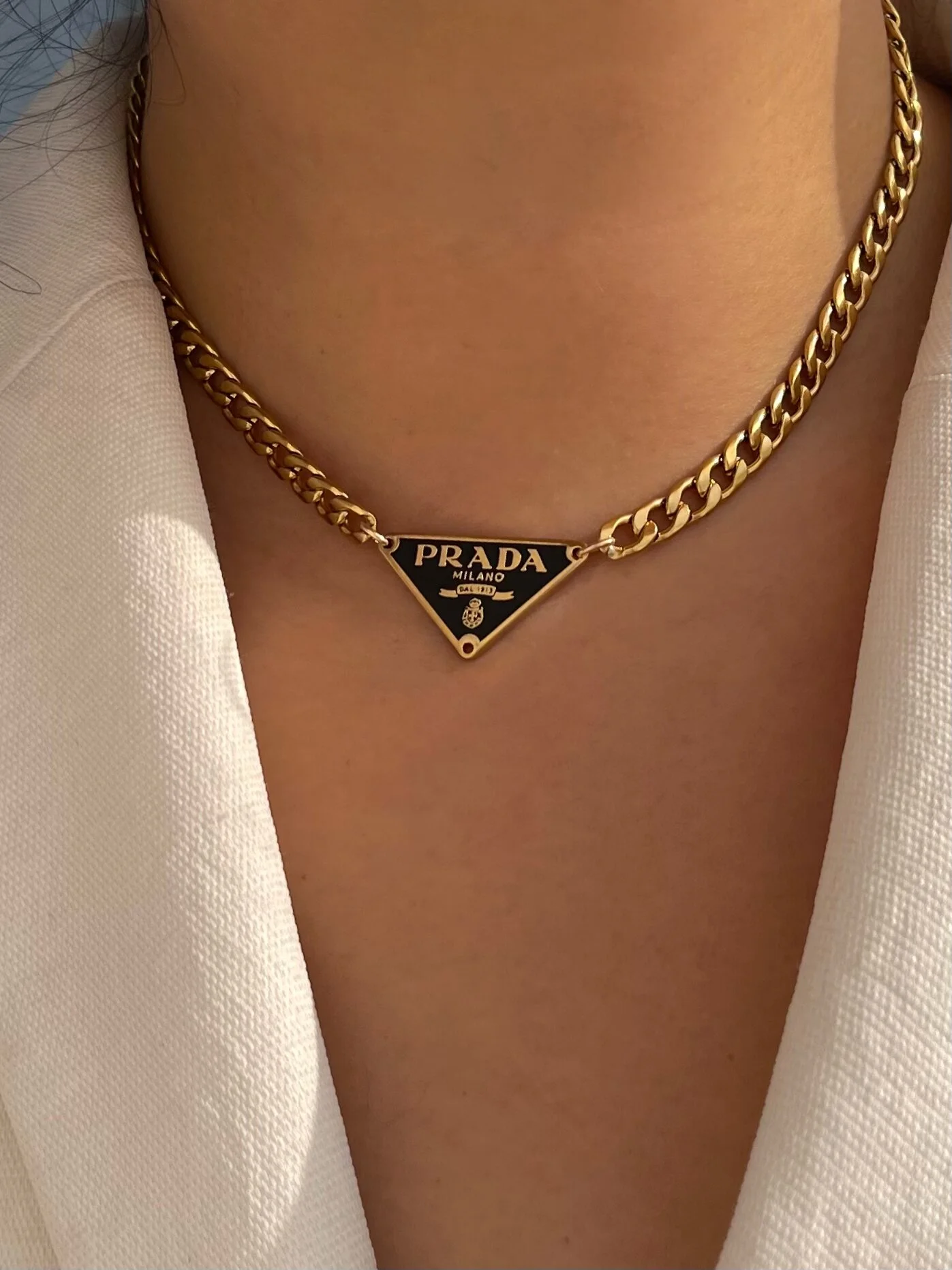 Reworked Silver Pendant Necklace Silver Chain Choker Prada Pin Neckl Very well made.