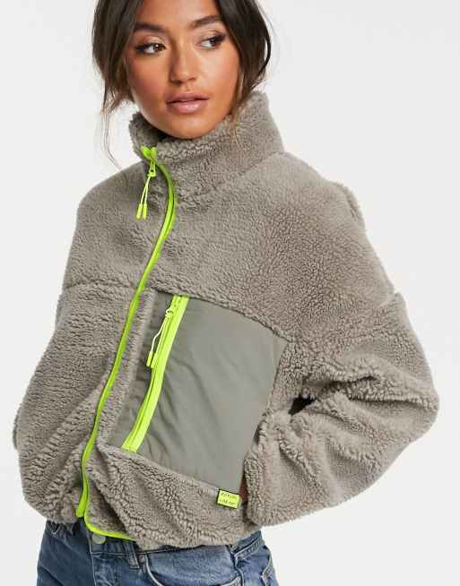 Pull Bear fleece jacket with contrast zip in grey Very well made.