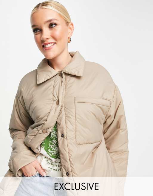 Pull Bear Exclusive lightly padded nylon jacket in mushroom Very well made.