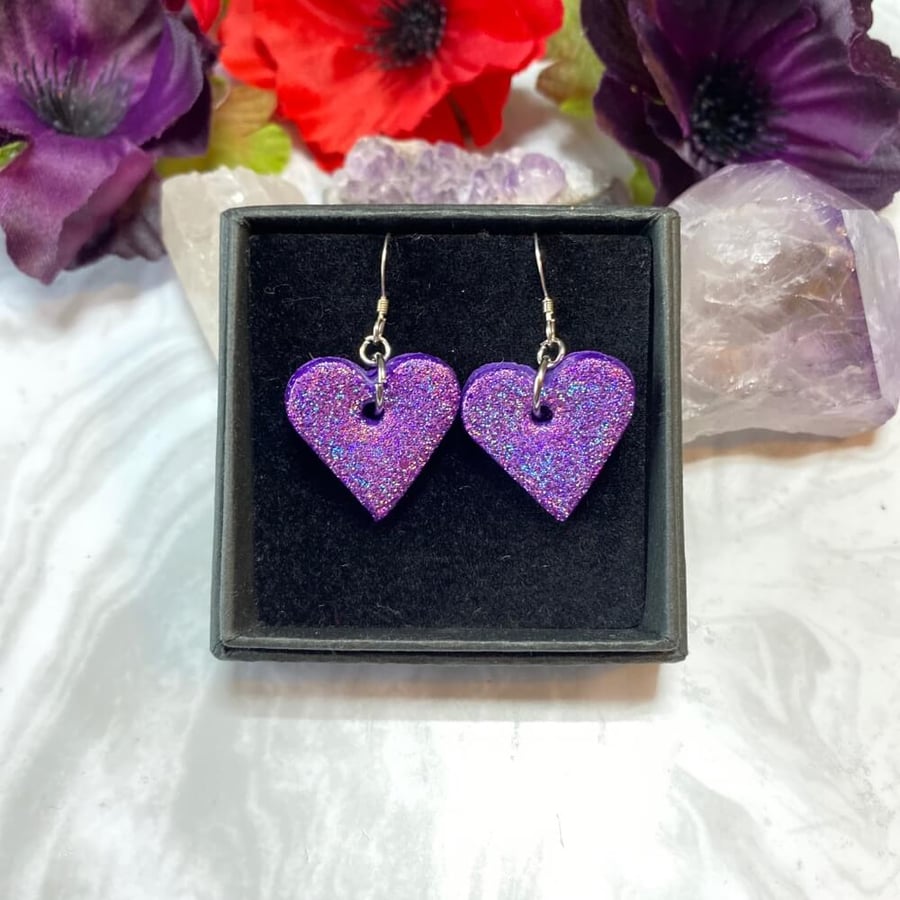 Purple heart glitter earrings on sterling silve Folksy Very well made.