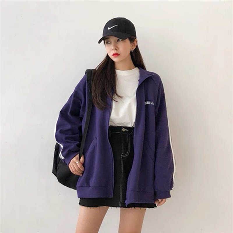 purple zip up double stripe jacket ulzzang korean vintage retro Very well made.