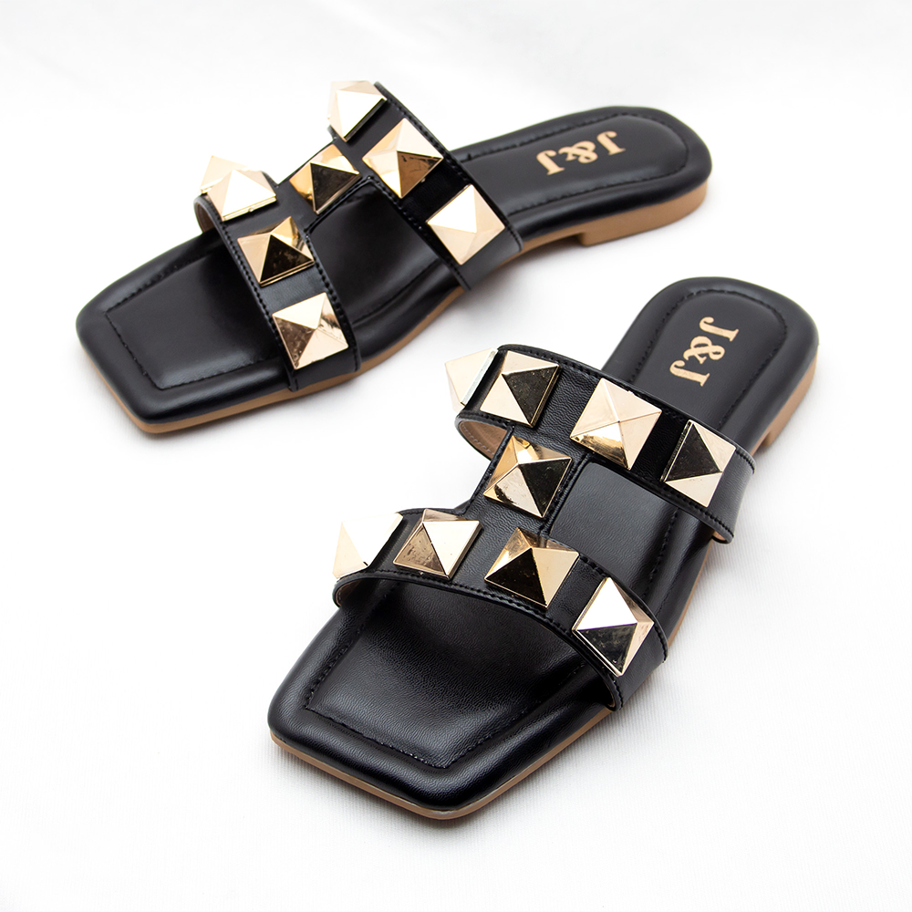 Artificial Leather Pyramid Stud Diamond Flat Sandal For Women Very well made.