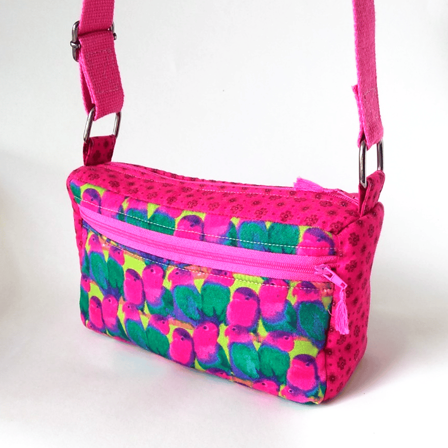 Lovebirds small crossbody bag pink and green box style Very well made.