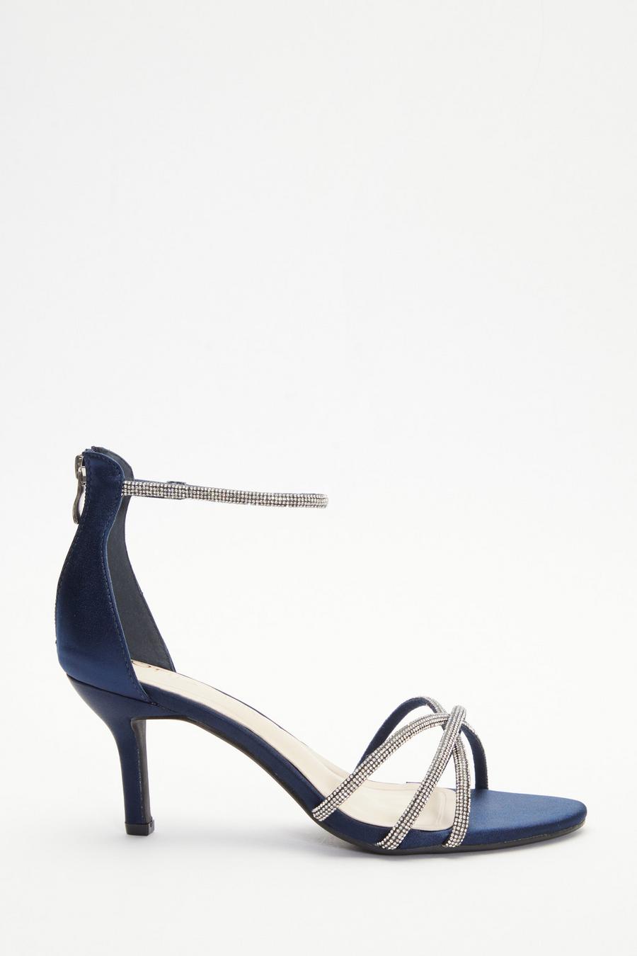 Quiz Wide Fit Navy Diamante Heeled Sandal in White Lyst UK Very well made.