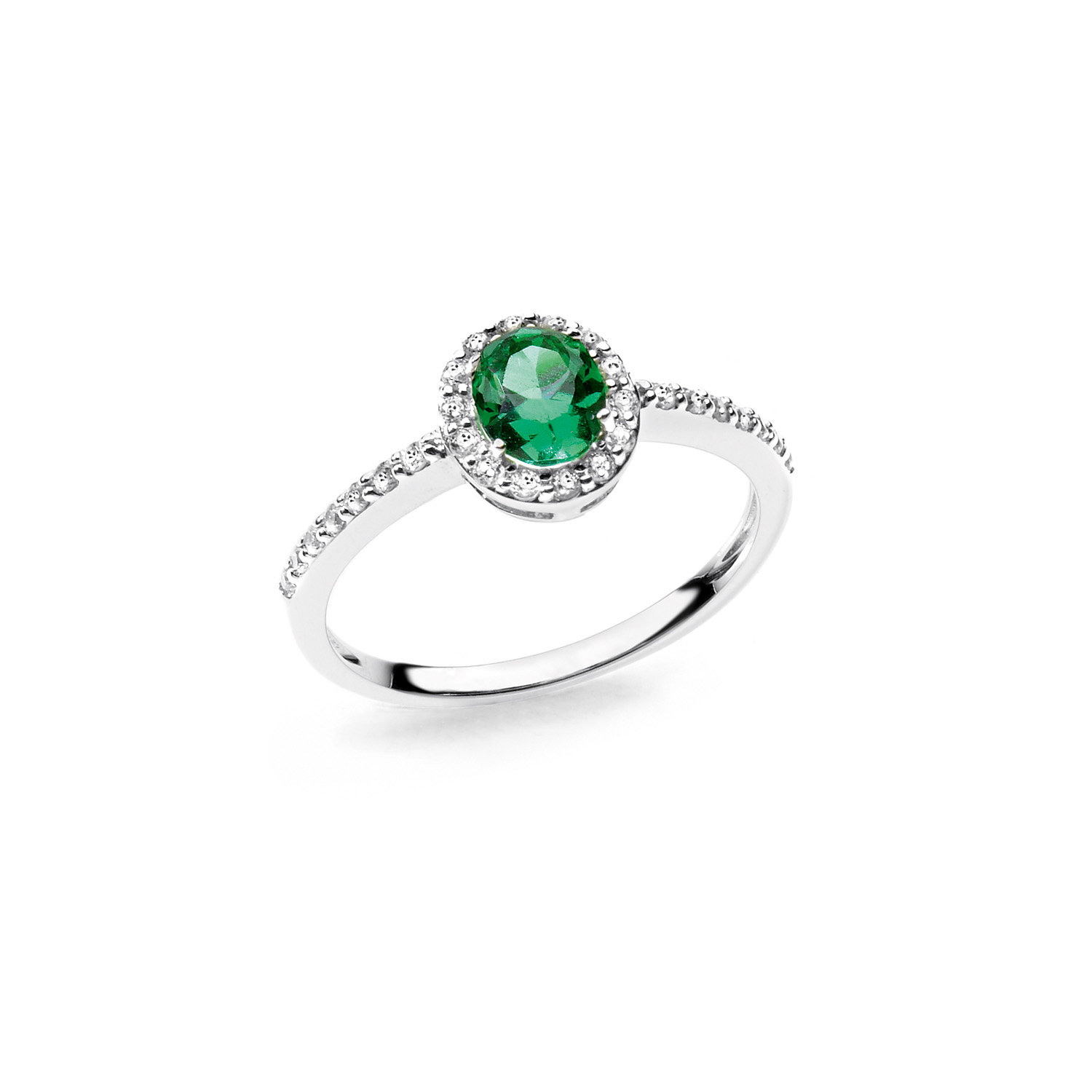 Anello in oro bianco 750 con zirconi bianchi e verdi AAZ017 Very well made.