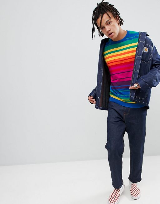 ASOS DESIGN jumper in vertical rainbow stripe Very well made.