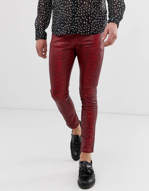 ASOS DESIGN super skinny coated leather look jeans in red snake skin Very well made.