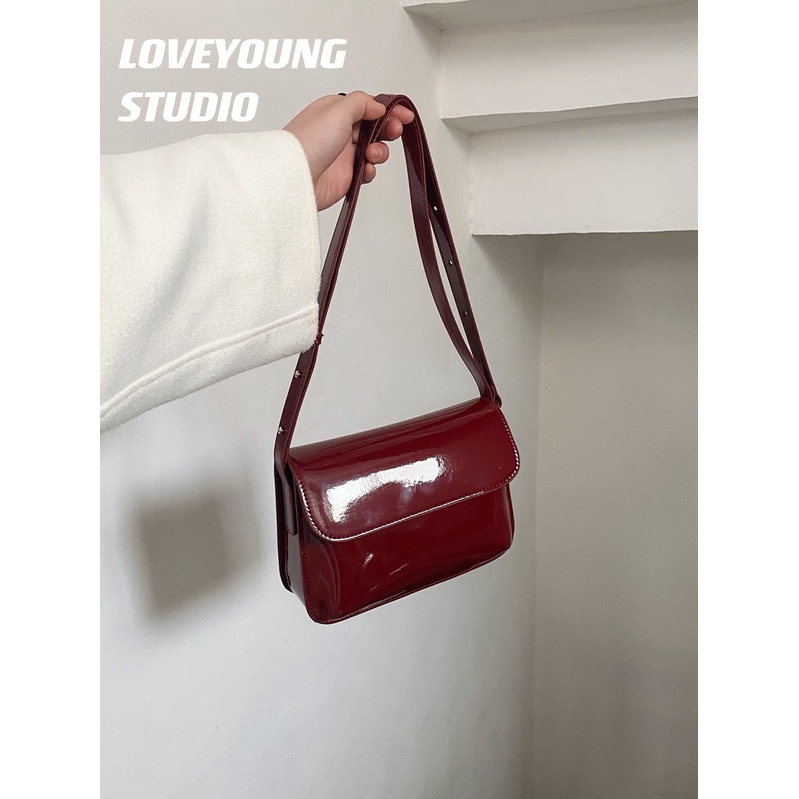Small square bag crossbody dual use shoulder bag wine red solid Very well made.