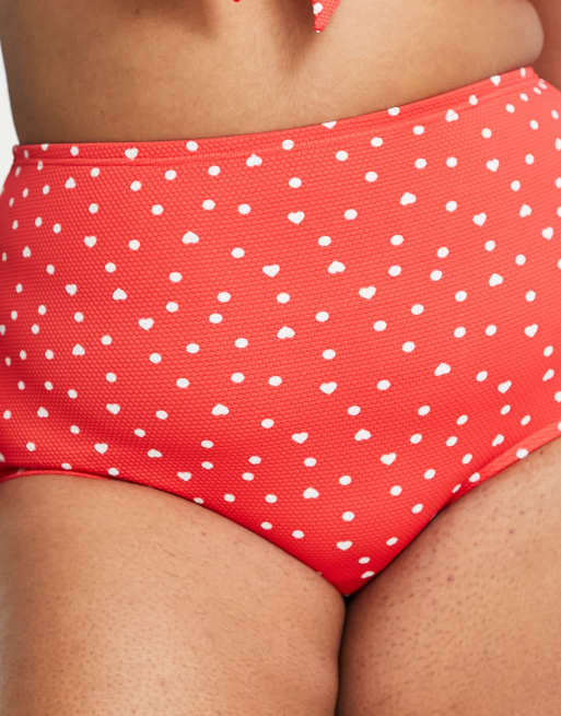 New Look Curve polka dot high waist bikini bottoms in red Very well made.