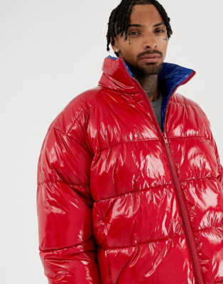 ASOS DESIGN puffer jacket in high shine in red ASOS Very well made.
