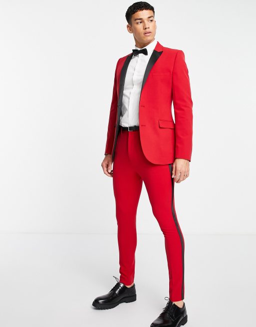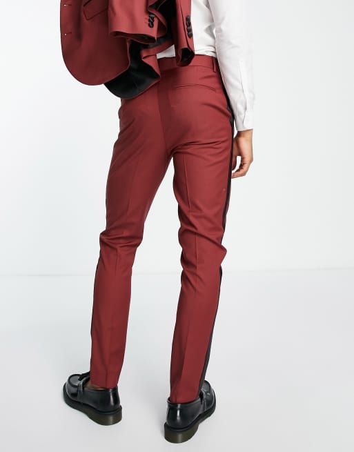 ASOS DESIGN skinny tuxedo pants with satin side stripe in red Very well made.