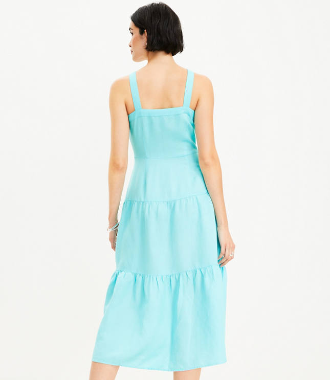 Linen Blend Strappy Button Tiered Midi Dress Very well made.