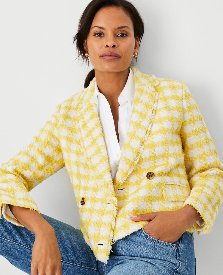 Plaid Fringe Tweed Double Breasted Jacket Very well made.