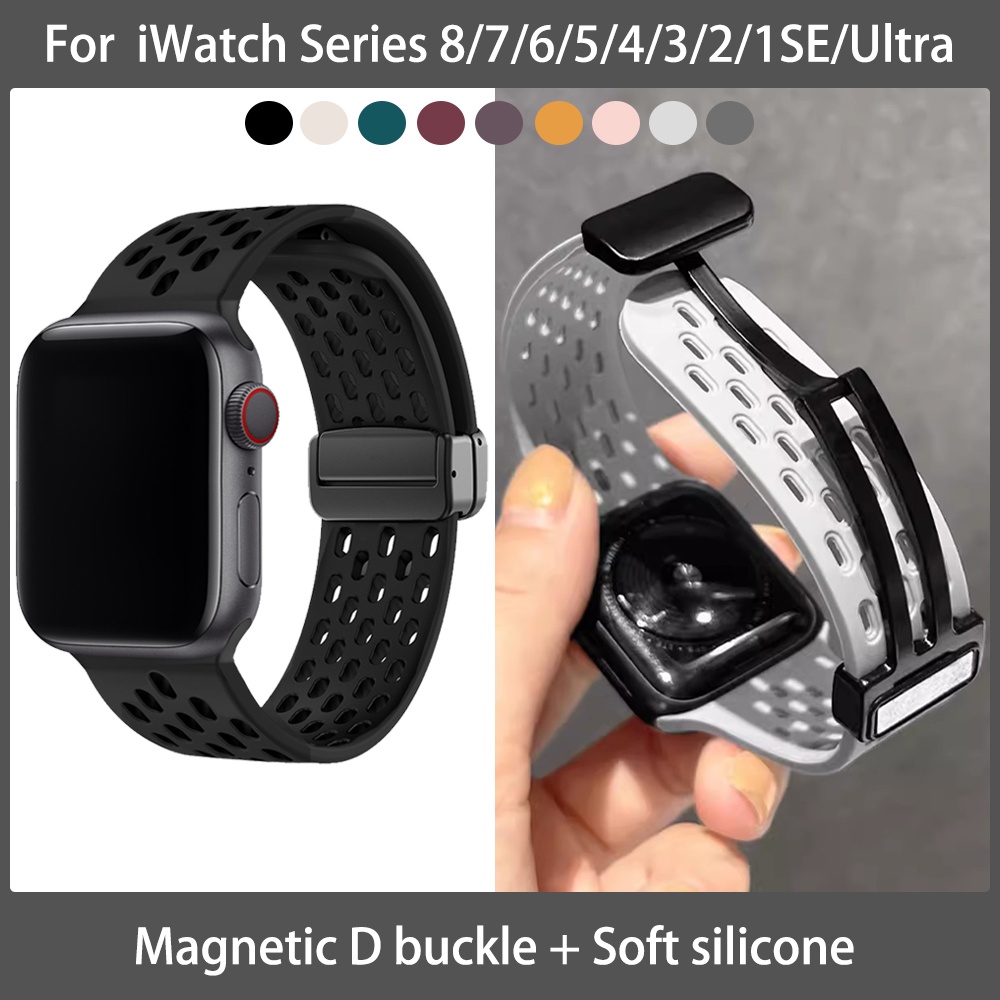 Magnetic Folding Clasp Silicone Breathable Strap For iWatch 49mm Very well made.