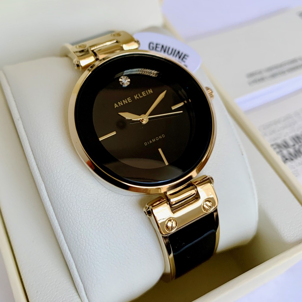 Original Anne Klein 1414BKGB Diamond Black and Gold Steel Watch Very well made.