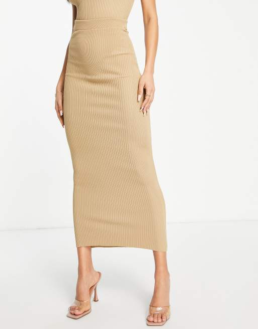 WMNSwear rib maxi skirt with seam detail co ord in sand Very well made.