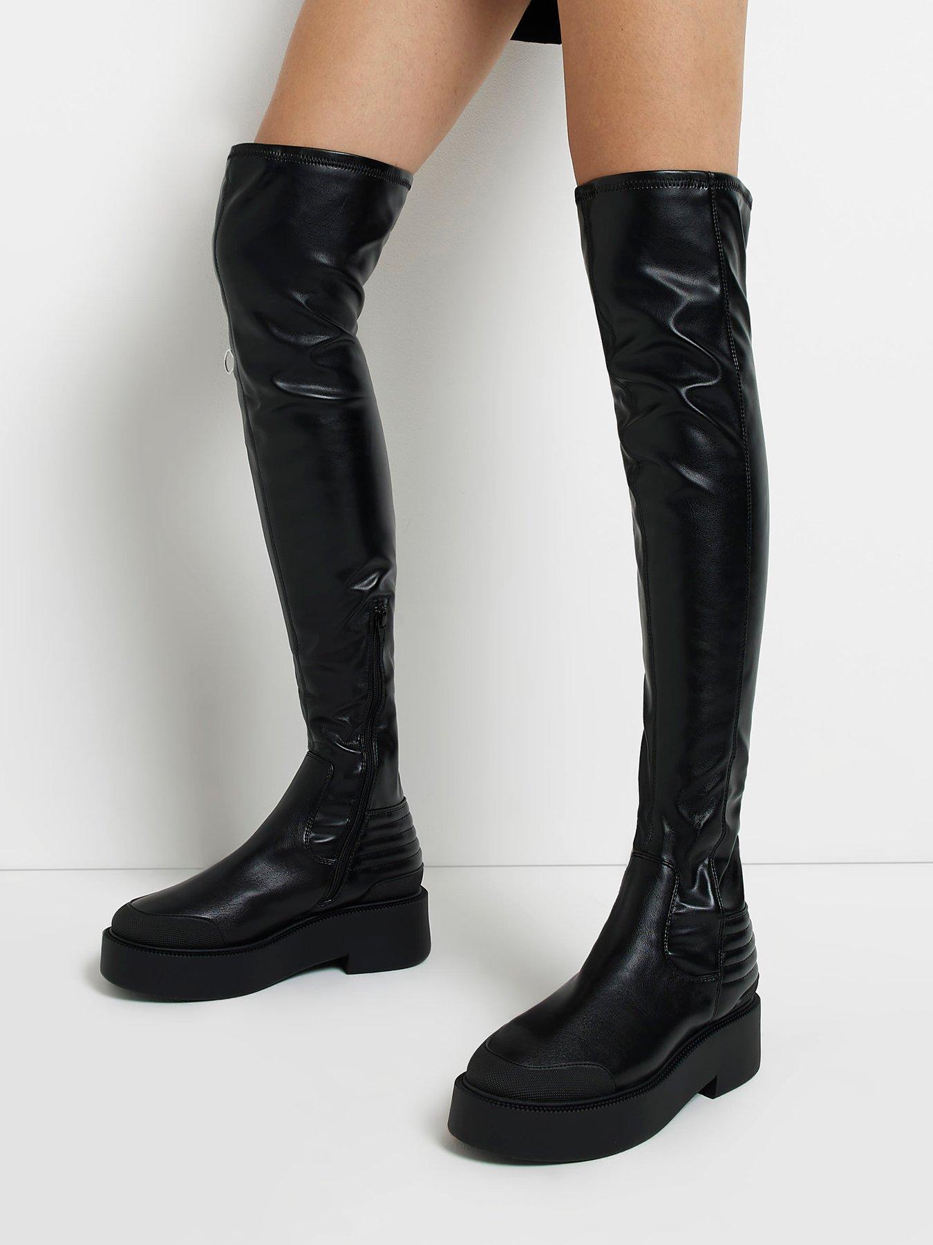River Island Black Thigh High Heeled Boots UK 8 Very well made.