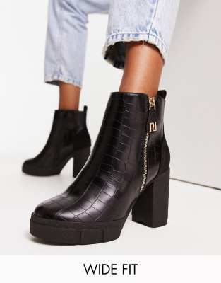 River Island Ankle Boots in schwarzer Kroko Optik mit seitlichem Very well made.