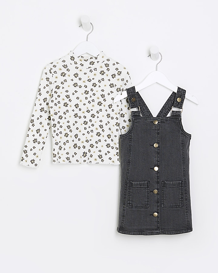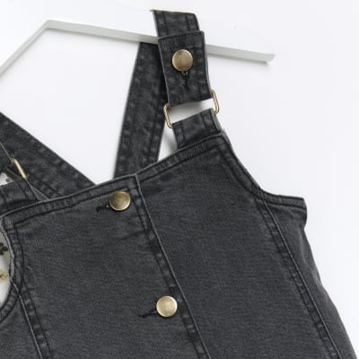 Mini girls grey denim pinafore dress set River Island Very well made.