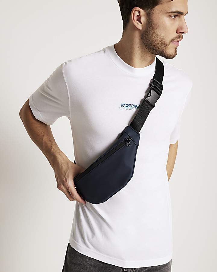 Navy Rubberised Zip Bum bag River Island Very well made.