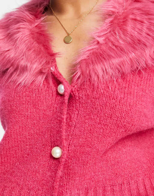 River Island Cardigan With Faux Fur Collar at asos Latest Very well made.