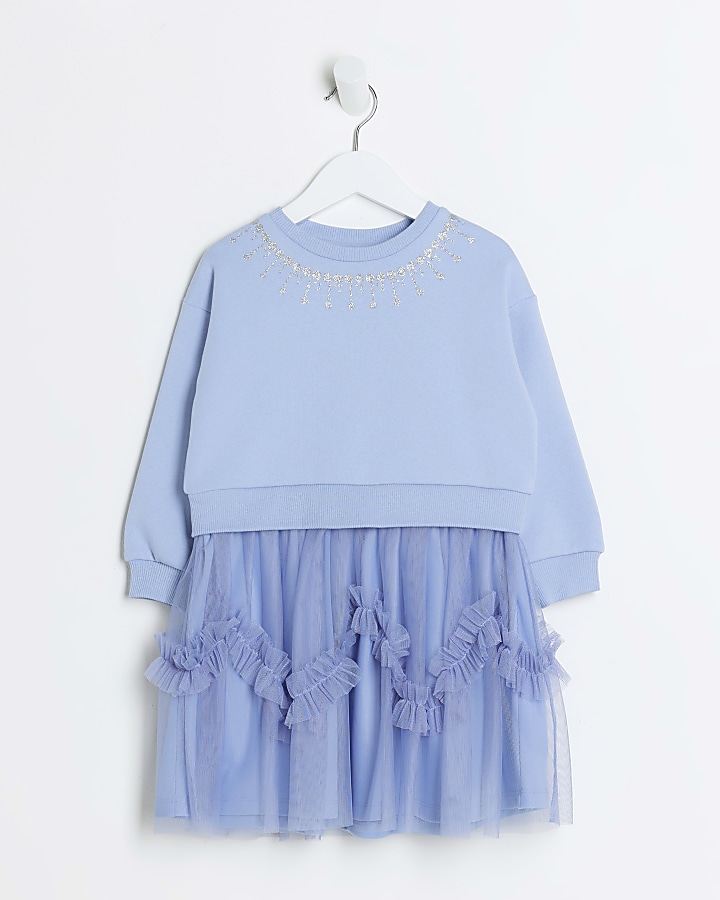 Mini girls blue frill hybrid party dress Very well made.