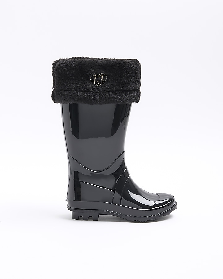 Girls Black Faux Fur Cuff Wellie Boots River Island Very well made.