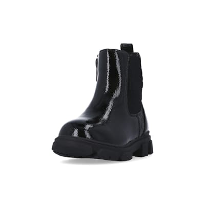Mini girls Black Lace up patent Chelsea Boots Very well made.