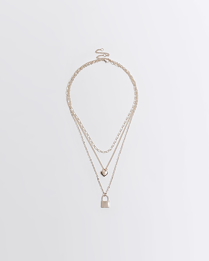 Rose gold heart and lock multirow necklace River Island Very well made.