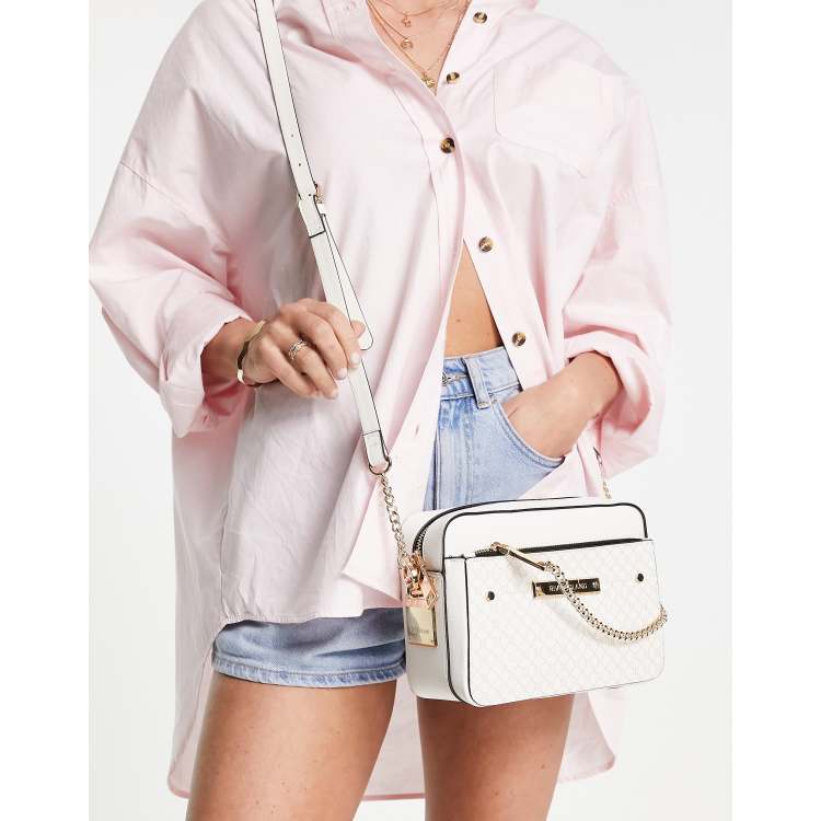 River Island chain front monogram boxy cross body bag in white Very well made.