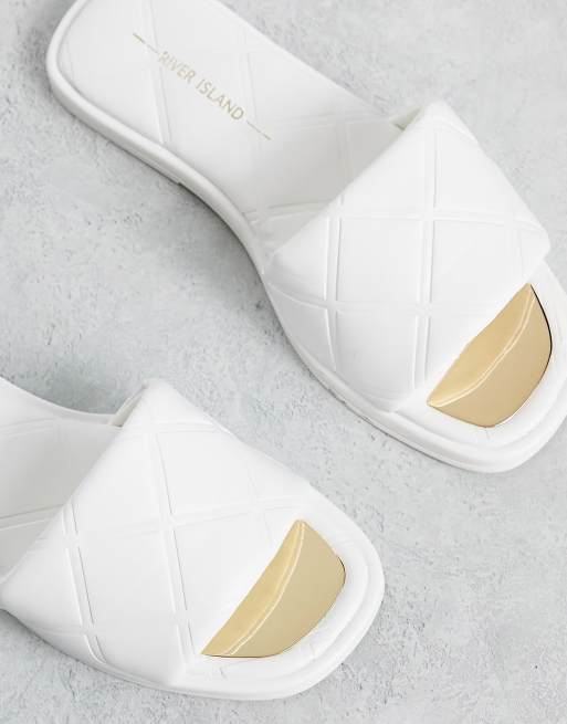 River Island Mens White diagonal river monogram sliders ShopStyle Very well made.