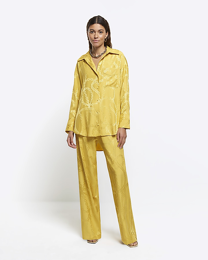 River Island Yellow Pleated Wide Leg Trousers Very well made.