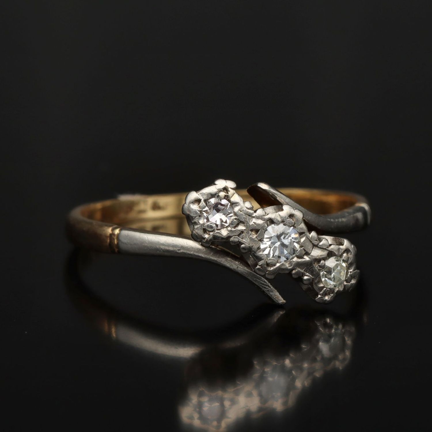 Vintage 18ct Gold Platinum Three Diamond Twist Ring. Joseph Very well made.