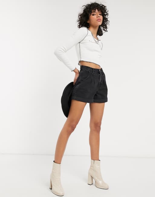 Topshop roll hem denim shorts in washed black Very well made.