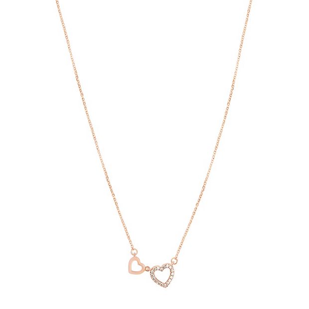 LC Lauren Conrad Rose Gold Tone Crystal Double Heart Necklace Very well made.