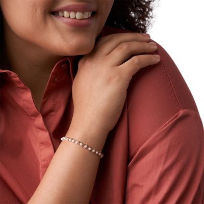 Drew Glass Pearl Rose Gold Tone Stainless Steel Multi Strand Very well made.
