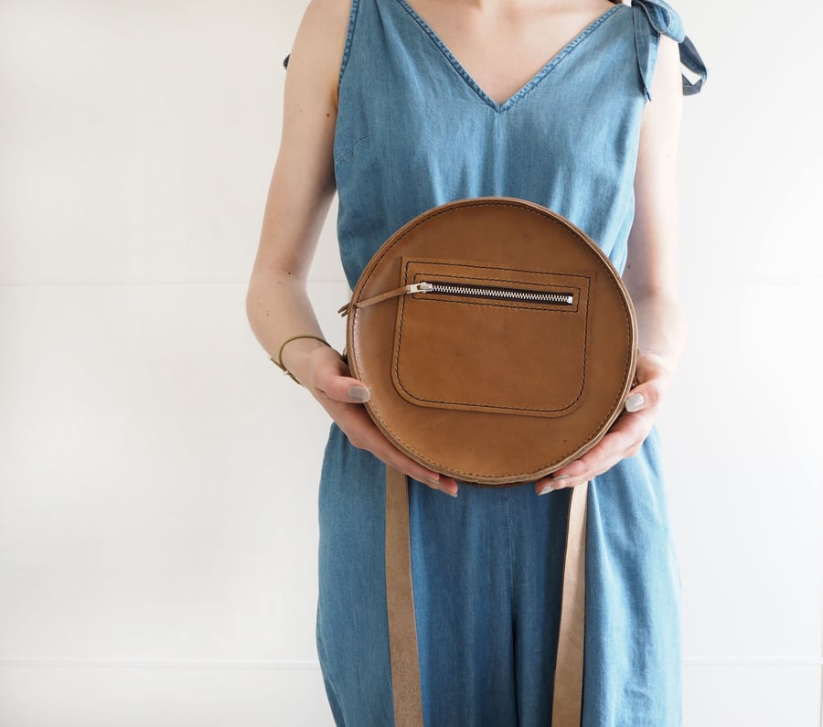 Brown Leather Round Circular Design Bag Folksy Very well made.